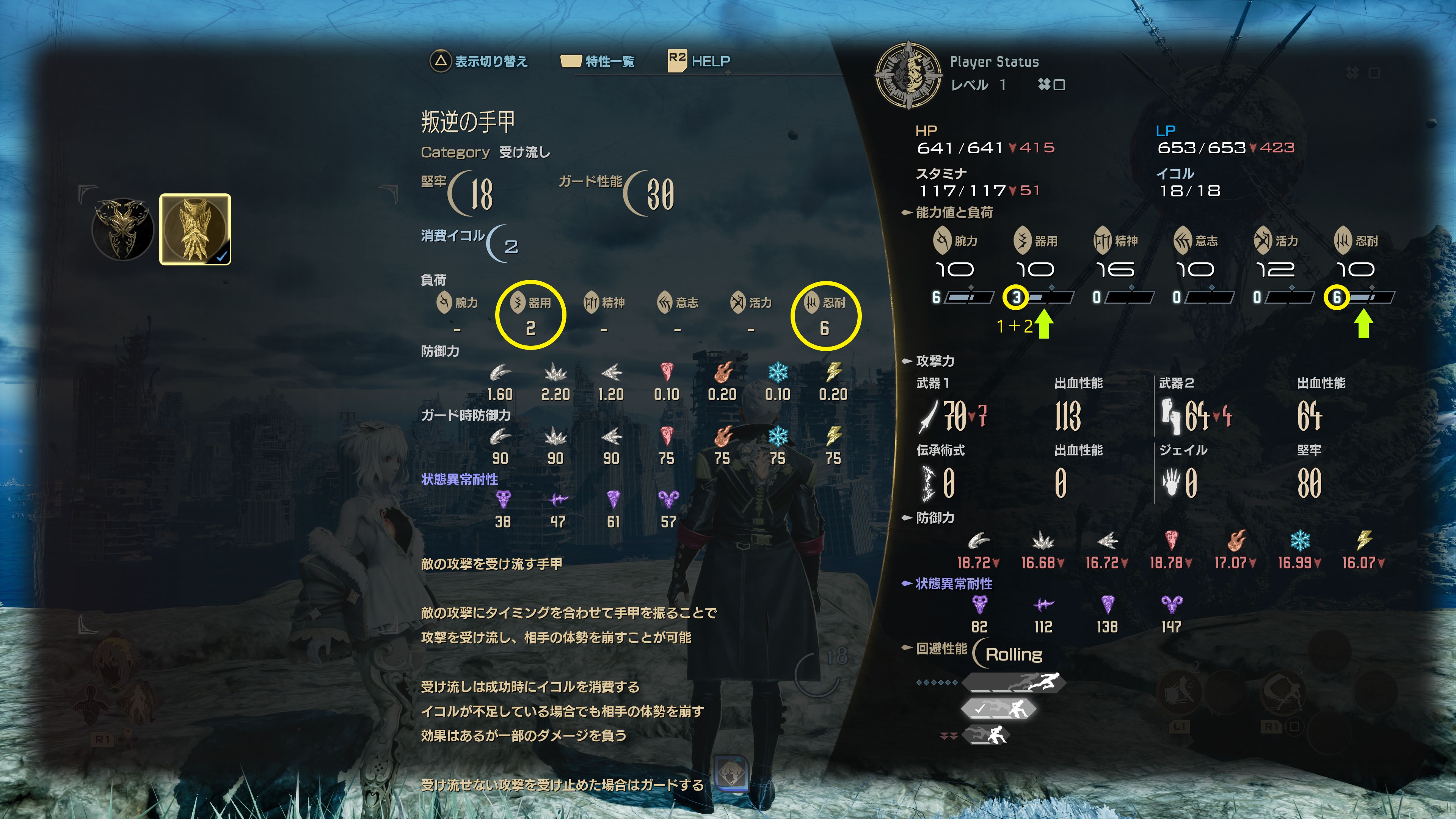 そのため過剰負荷を発生させたビルドでは、テクニックが要求されるハイリスクハイリターンな戦闘を楽しむことができます(なお、2つ以上の能力値で過剰負荷が発生すると回避性能が下がるのでご注意を)。